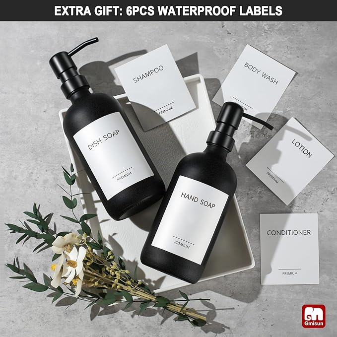 - 【6PCS WATERPROOF ELEGANT LABELS】 GMISUN provides 6pcs elegant waterproof labels for each 2-pack set of soap dispenser for kitchen sink. The highly effective waterproof feature makes them stay tightly attached to the kitchen soap dispenser without any wrinkling, warping, or breaking from moisture. Making your kitchen and bathroom tidy and clean and giving the kitchen soap dispenser a more vintage vibe.