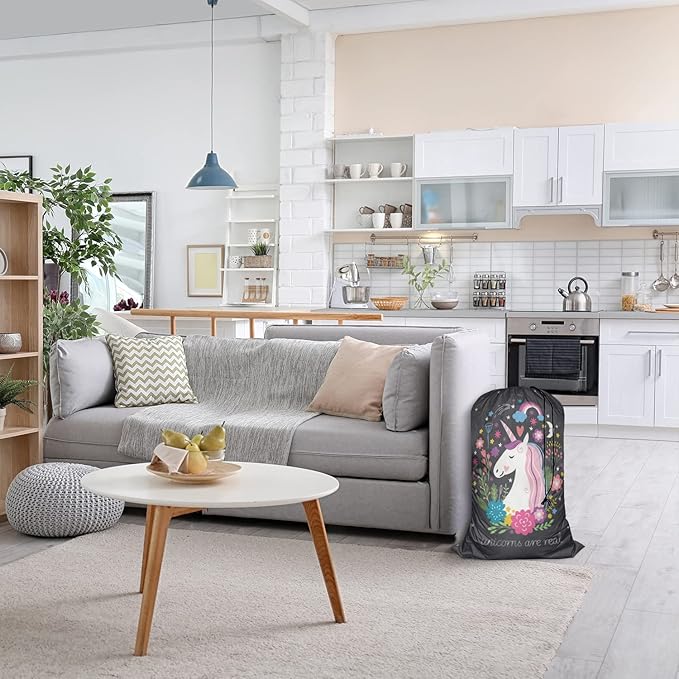 Swono Unicorn Are Real Extra Large Laundry Bag with Drawstring Closure 28"x40", Oxford Cloth, Rainbow Cartoon Fairy Star Floral for Home, Dorm and Apartment Dwellers, Magic Animal