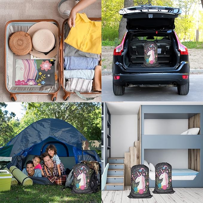 - 4.Multi-Function Use: People can take a week's dirty clothes home and easily fold them up for future use. It is ideal to tidy up dirty clothes in travel, summer camp, home or university. These large laundry bags can also be used to store quilts, sheets, blankets, bedspreads, coverlet, etc.