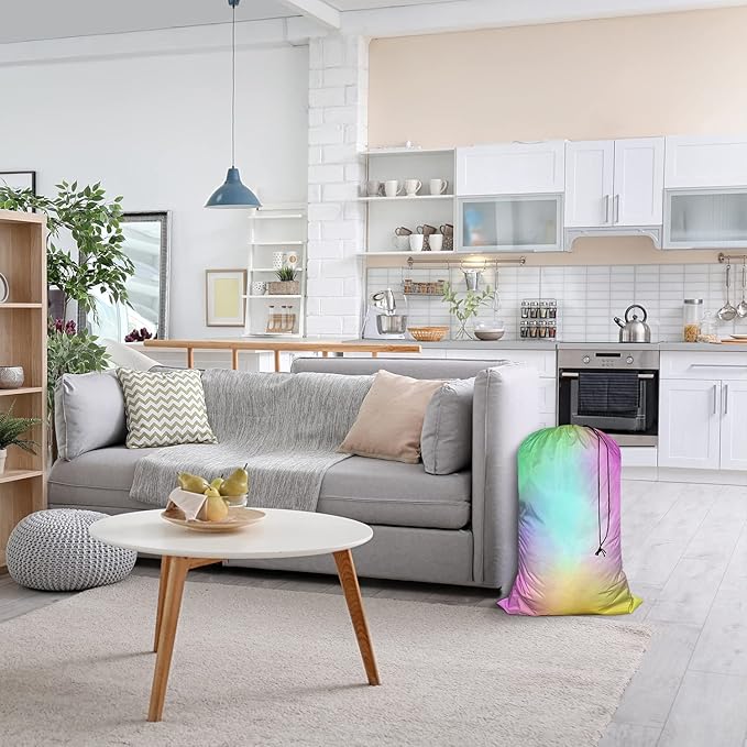 Swono Watercolor Rainbow Extra Large Huge Heavy Duty Oxford Cloth Laundry Storage Bag with Drawstring Closure, Clouds Beautiful Dye Gradient Art Laundry Bag, Machine Washable, Colorful