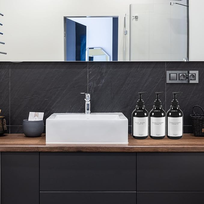 - QUALITY MATERIALS:This shampoo and conditioner dispenser is Carefully design, environmental standard, Reinforced and thickened plastic bottles, high quality pumps and pump cores, Reinforced 55g PET plastic bottle, white waterproof label, not afraid of wet environment, durable. This soap applicator will make your home more organized, beautify your bathroom or kitchen, and bring a good mood to your family.