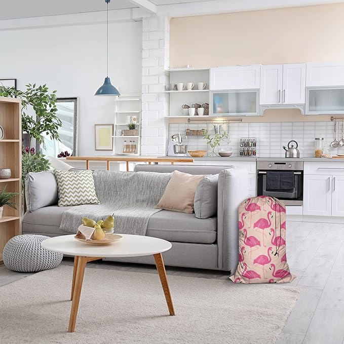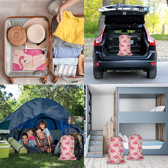 Swono Pink Flamingos Extra Large Laundry Bag with Drawstring Heavy Duty Travel Dirty Clothes Bag for Laundromat Household, Tropical Bird Feather Beak Rip-Stop Laundry Hamper Bag, 28x40 Inch, Wildlife