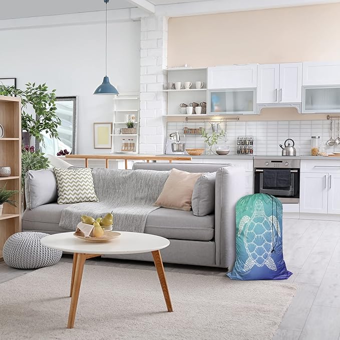 Swono Sea Turtle Laundry Bags for Travel, Home, Camping and Gym Water Bubble Seaweed Sea Life Laundry Hamper Basket 28" x 40", Football Grid Oxford Cloth