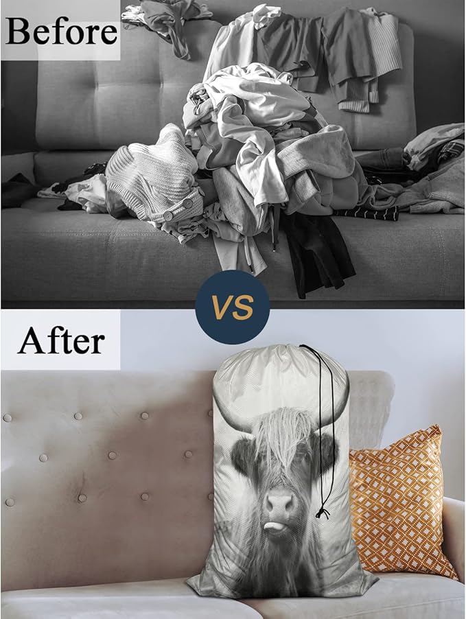 Swono Scottish Highland Cow Extra Large Travel Laundry Bag, Rip-Stop Dirty Clothes Shoulder Bag with Drawstring, Funny Animal Farm Mammal Wildlife Heavy Duty Travel Laundry Bag, 28x40 Inch