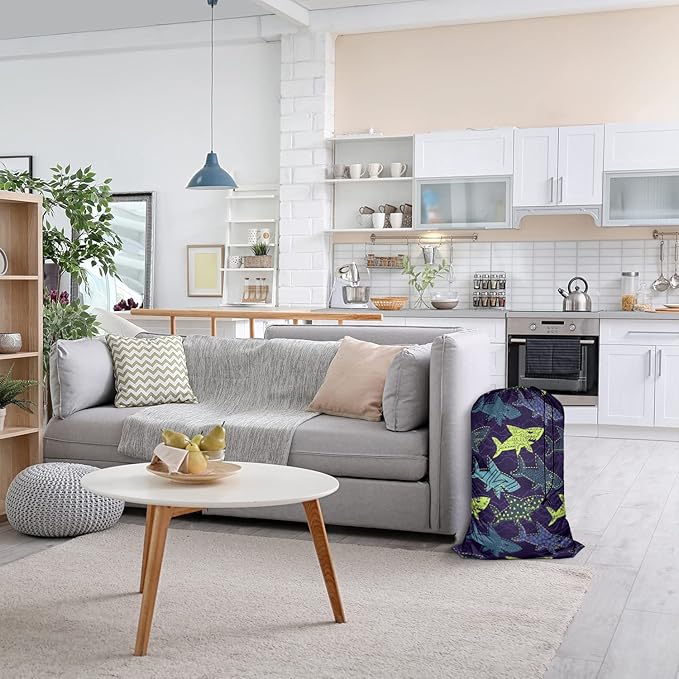 Swono Sharks Laundry Bags 28" x 40", Underwater Sea Life Pattern Versatile - Multi Use, Football Grid Oxford Cloth, Colorful
