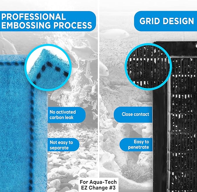- 【Full filtration】The filter cartridge has dense filter cotton, which can adsorb all kinds of debris and fish excrement, and the grid design of the fish tank filter cartridge makes full contact between the activated carbon and water to achieve maximum deodorization and water purification, thus giving your lovely pet a fresh and comfortable living environment, and also saving you the time of manually cleaning the fish tank.