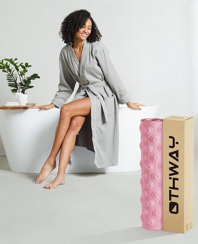 OTHWAY No Suction Cup Bath Mat: 39x16inch Extra Long Bathmat│Perfect for Refinished Bathtub Mat│Made of Nature Rubber│a Blessing for The Elderly and Children (Pink)