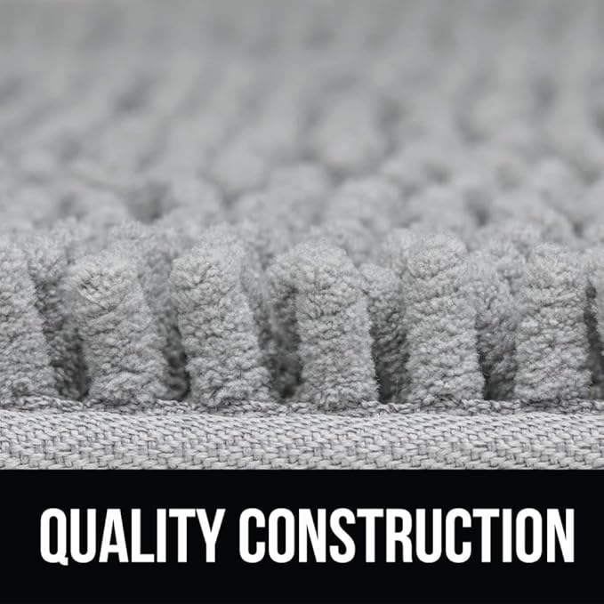 KANGAROO Bathroom Rugs, Chenille Soft Absorbent Bath Rug, Shaggy Shower Mat, Quick Dry Machine Wash Bathmat, Plush Carpet Mats for Tub, Bathtub and Room Home Decor Accessories, 24x17, Light Gray
