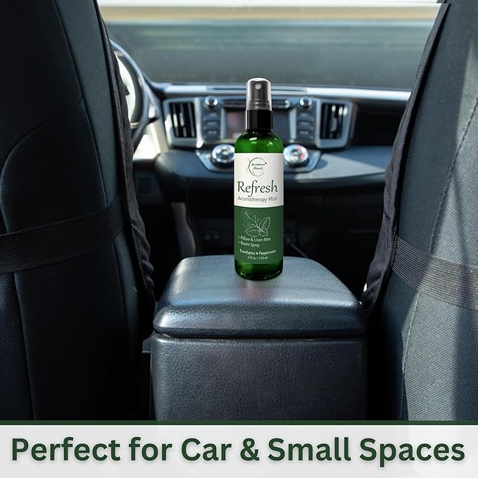 - So Fresh! No matter where you are or what needs freshening up, Refresh Aromatherapy Mist can help. This multi use Eucalyptus & Peppermint Linen spray makes the perfect room spray, fabric spray, pillow spray, linen spray for bedding, air freshener, car fragrance, bathroom freshener & so much more.