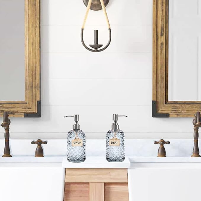 - Elaborate design:This soap dispenser bottle has a diamond-shaped design for a fuller look, and comes with a small wooden hangtag that lets you distinguish the liquid you need .