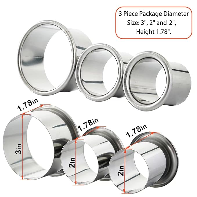 - 3 pieces package diameter Large inner diameter: 3inch, Medium inner diameter: 2inch 2pcs and Height: 1.78inch.