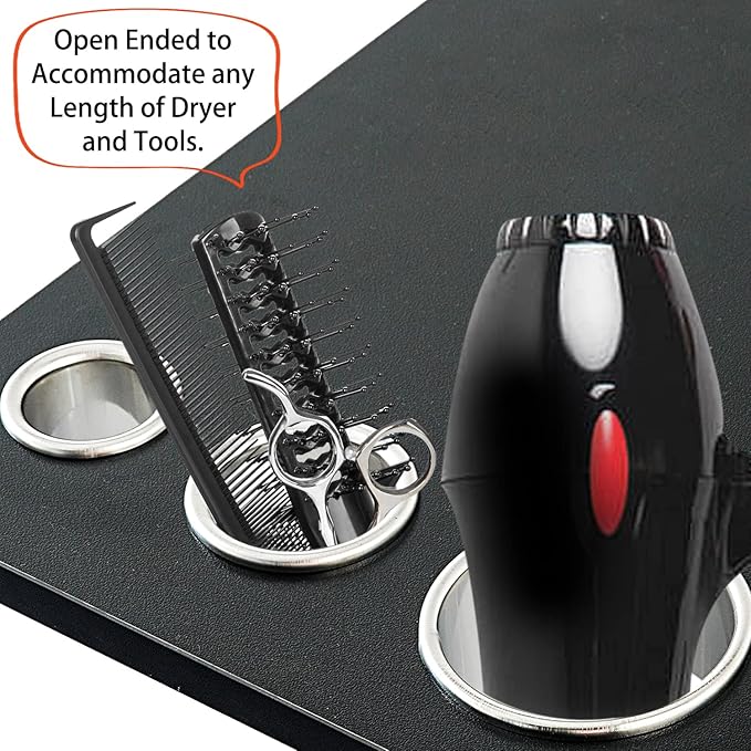 - Open ended to accommodate any length of hair dryer curling flat and hot iron tools, round overhand lip to insert into cutouts so they do not drop down.