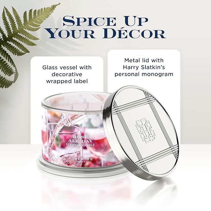 HomeWorx by SLATKIN + CO. Candle- Rose All Day, 18 oz. Premium Scented Candle - 30-55 Hours Burn Time