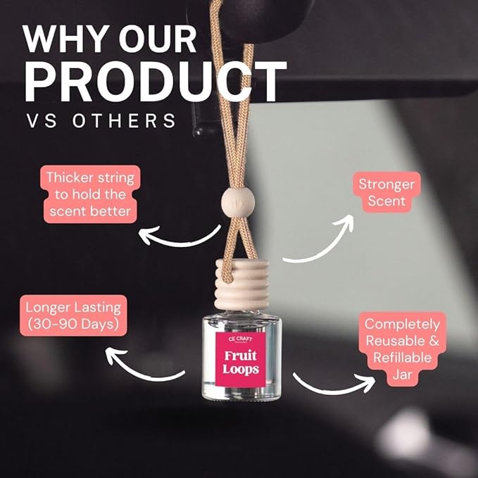 - LONG-LASTING FRAGANCE: Enjoy the delightful scent of our CE Craft Scented Car Freshener for over 60+ days with typical use; Made with premium oils, this diffuser ensures a lasting fragrance experience, perfect for any vacation or daily commute
