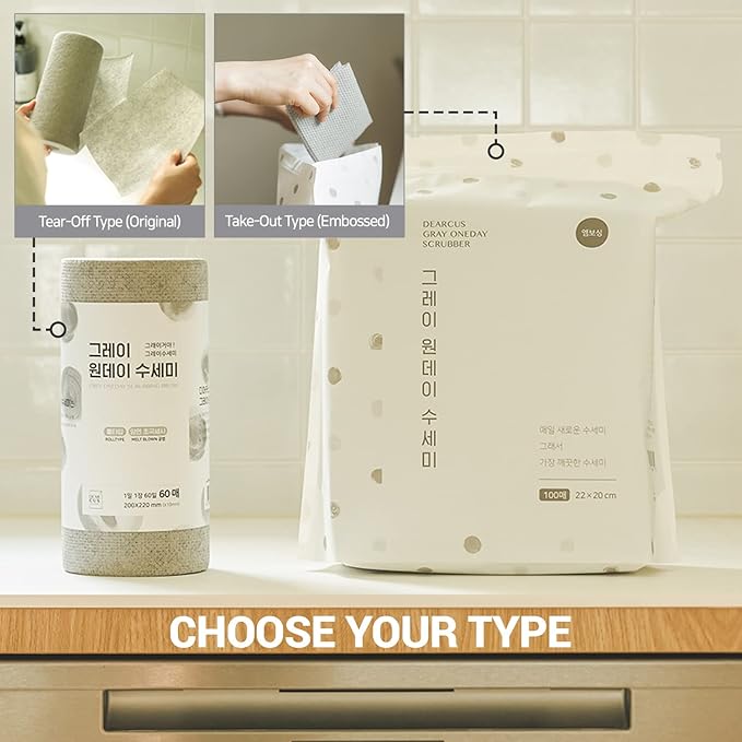 DEARCUS Gray One Day Scrubber - No Odor Dishcloths for Washing Utensils, Cookware, & Cooktop – Multipurpose Lint Free Cleaning Cloths for Kitchen Made of PP - for One Day Use, 2 Pack 120 Sheets