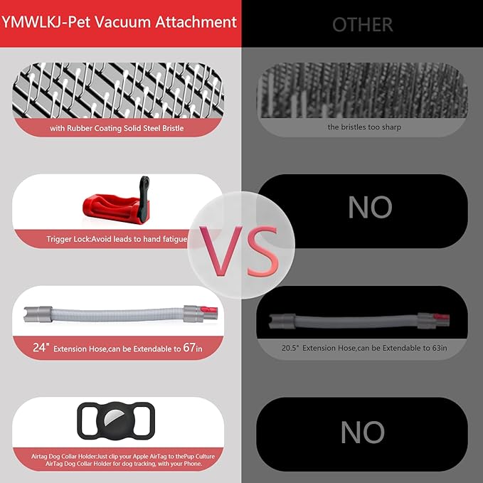 - Improved suction for optimal performance: Our grooming tool is designed to maximize the suction of your for Dyson vacuum cleaner, ensuring that it can effectively remove pet hair from your home's carpets and upholstery.