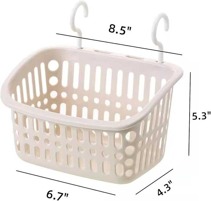 3PCS Plastic Hanging Baskets for Shower, Hanging Basket Organizer with Hooks, Rectangle 8.5Inches Small Hanging Storage Basket (Beige)