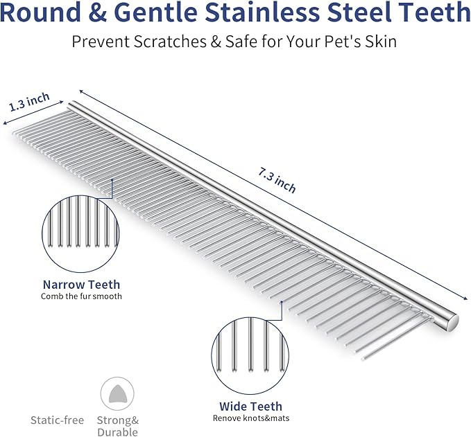 - Bonus Pet Comb for Dual Functionality: Use the included pet comb to detangle fur and clean trapped hair from the slicker brush. Great for post-grooming cleanup and keeping your tools ready for use.