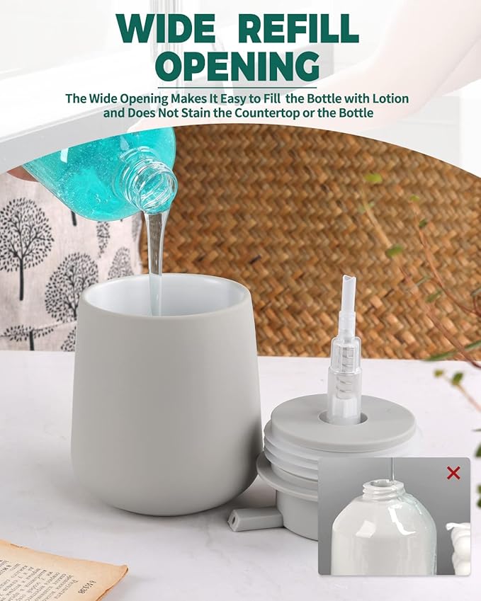 - Ceramic Hand Soap Dispenser: Light gery lotion dispenser is made from premium ceramic, lead-free, safe to fill with variety of daily use liquids and is durable and easy to clean, adding elegance and convenience to your home