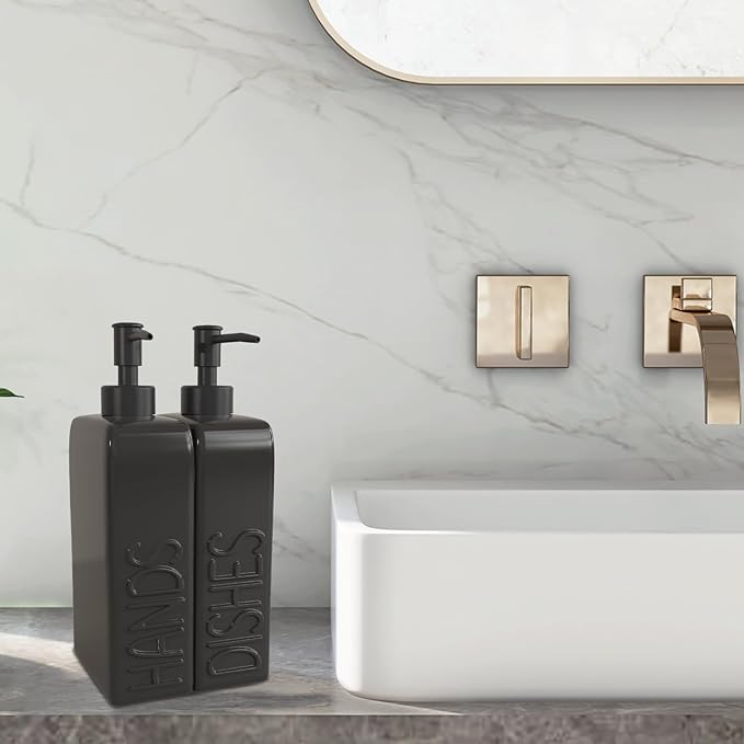 - HIGH QUALITY: The dish soap dispenser is made of high-fired ceramic, heavy and sturdy, making them won't easily tip over on the countertop and easy for single-handed pump operation.