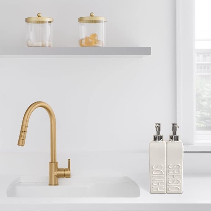 - HIGH QUALITY: Made of high-fired ceramic for a heavy and sturdy feel. Features a rust-resistant stainless steel pump that is smooth and easy to press. Perfect for the kitchen, bathroom, or laundry room