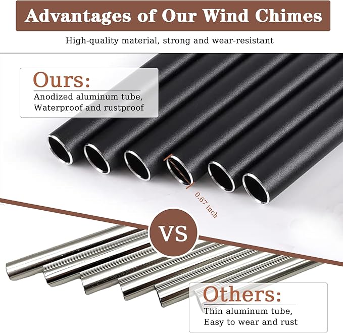 - Premium Blackened Material: This pet remembrance wind chime has a total height of about 28 inches (from the hook to the bottom of the pendant). It's made of high-quality thickened aluminum tubes, which are high-quality and wear-resistant. The 6 aluminum tubes, ranging in size from 8.3 inches to 12 inches, are anodized and thickened to prevent corrosion. Each piece is of the highest quality.