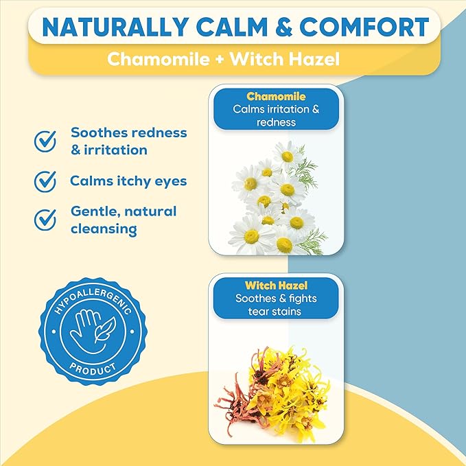 - Gentle & Unscented - Specially formulated for sensitive pets, our Eye Wipes for Dog and Cat are unscented and gentle. Made from 100% natural cotton, they offer a safe and gentle way to maintain your pet's eye health without causing discomfort.