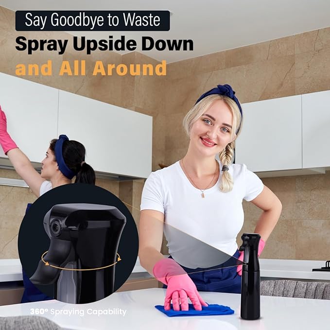 - 360° Fine Mist Sprayer: Easily reach every angle with our continuous spray bottle. Just a gentle squeeze releases a smooth, long-lasting mist—perfect for evenly coating hair, plants, or surfaces.