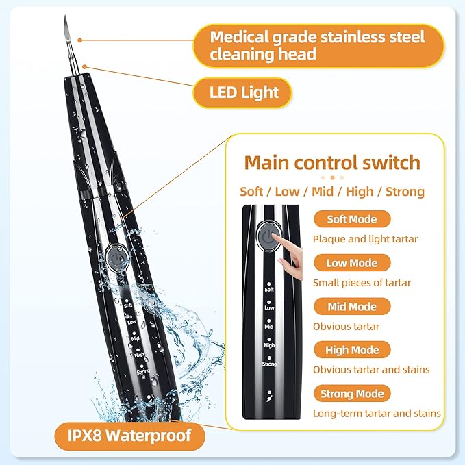 - ✅Adjustable for All Breeds and Sizes... 5 intensity settings make it ideal for all pet sizes—whether for small dog dental cleaning, large breed teeth care, or cat tartar removal.