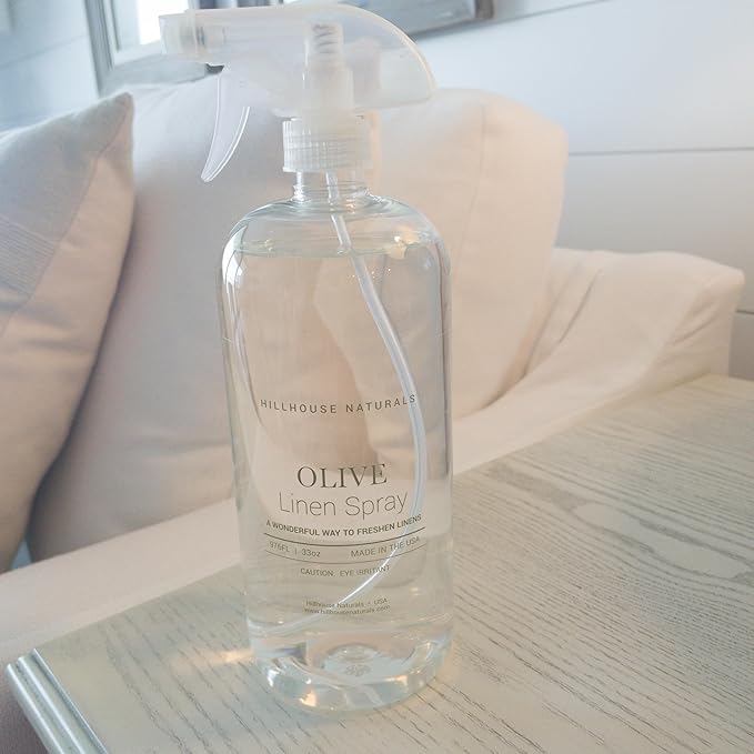 Hillhouse Naturals Linen Mist and Room Spray - Pure Essential Oils for a Pillow and Fabric Spray - Aromatherapy Spray for Relaxation and Sleep - 1 liter (Olive)