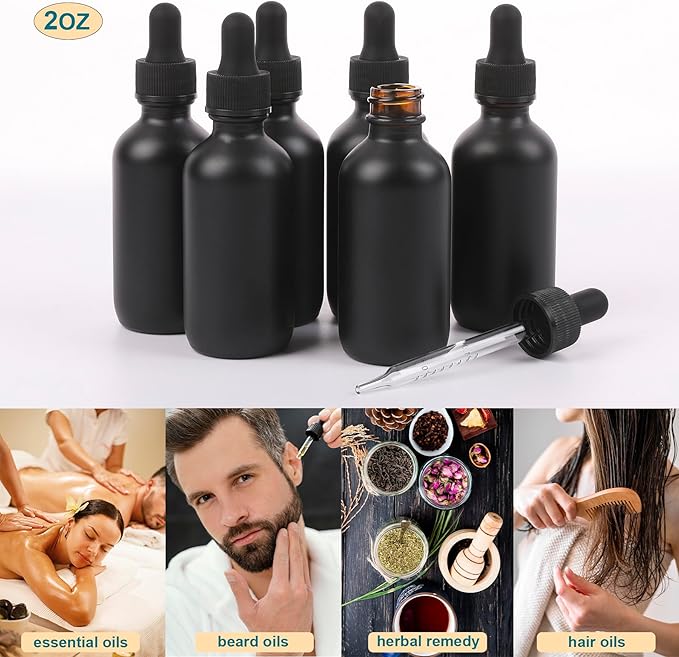 2oz Glass Dropper Bottle,Preety Texture Tincture Bottles with Precise Scales Eye Droppe,for All Kinds Of Mixed Liquids,Leak-Proof Design for Easy Travel (Black Frosted-24Pack)