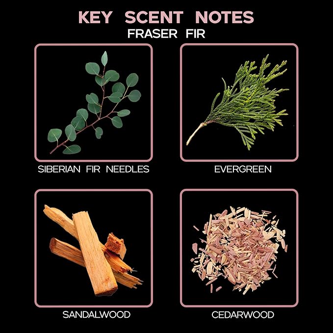 - FRASER FIR – is a classic 4oz diffuser oil refill with Fir, Evergreen, Pine, Cedar, and Sandalwood; brings the crisp and woodsy aroma of a freshly cut Christmas tree into your home