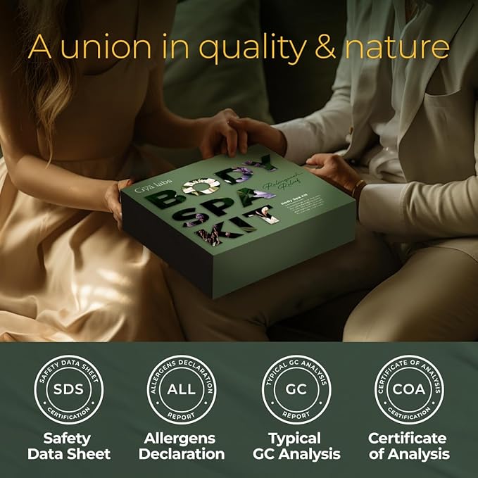 - Safety and quality. Botanicals infused with nature's wisdom, all Gya Labs’ gift sets of massage oils, aromatic oils, and other self-care essentials are tested by MSDS, COA. For external use only. Always dilute essential oils prior to usage on skin.