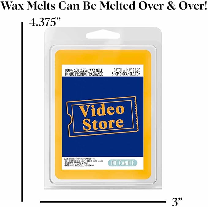 Video Store Scented Wax Melts - Smells Like Popcorn, Carpet, VHS Tapes - 100% Naturally Vegan Soy and Premium Fragrance | Great Gift | Handmade in Denver, Colorado (4 Pack Wax Melts)