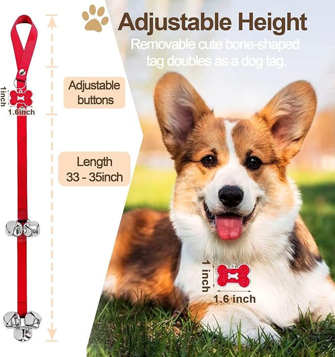 - 🔔Durable Puppy Bells: Our 5 piece 1.4'' extra large bells and dog tag are made of premium stainless steel material, firm and not easily deformed and can make jingle sounds loud but not shrill. You can hear your puppy telling you that he/she wants to go outside.
