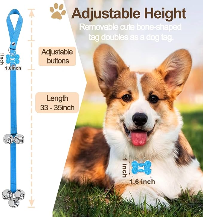- 🔔Adjustable Length: The training bell has a strong buckle that can hang from nearly any doorknobs or handles. You can easily adjust the length between 33'' and 35'' and make it suitable for your dog friends to ring the bell.