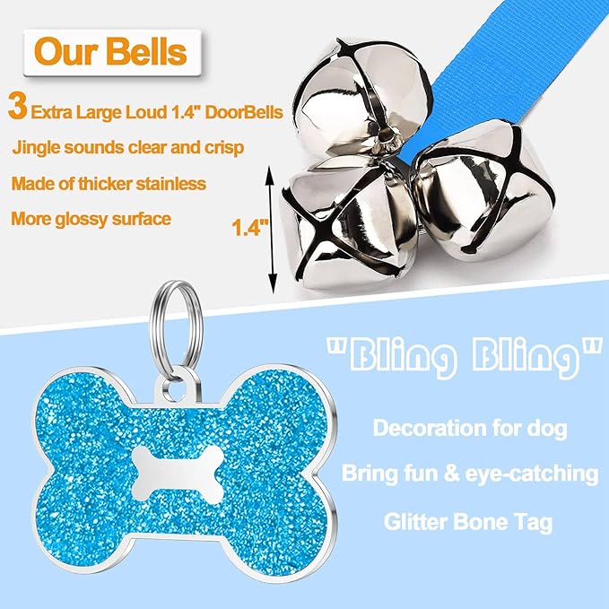 - 🔔Durable Puppy Bells: Our 7 piece 1.4'' extra large bells are made of premium stainless steel material, firm and not easily deformed and can make jingle sounds loud but not shrill. You can hear your puppy telling you that he/she wants to go outside.