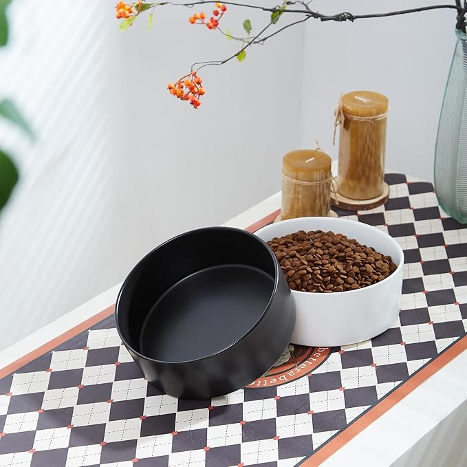 - SAFE MATERIAL: The dog food bowl glaze is made of 100% food-grade ceramic, Non-toxic and tasteless, microwave safe, wholeheartedly protect your beloved pet's food safety.
