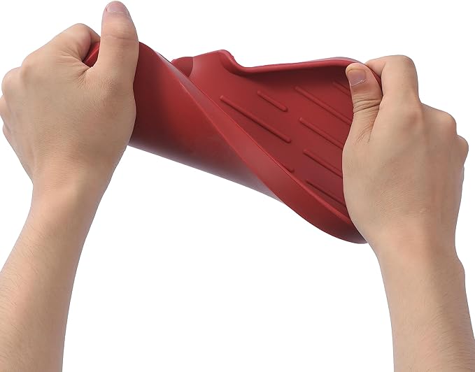 Silicone Bathroom Soap Dishes with Drain Spout-Bathroom and Kitchen Sink Organizer,Sponge Holder,Dish Soap Tray,Perfect for Dispenser,Scrubber,Bottle,Cup on Sink or Counter-Red 9.6"×5.3"