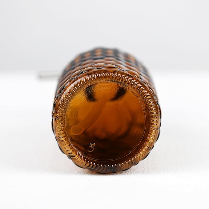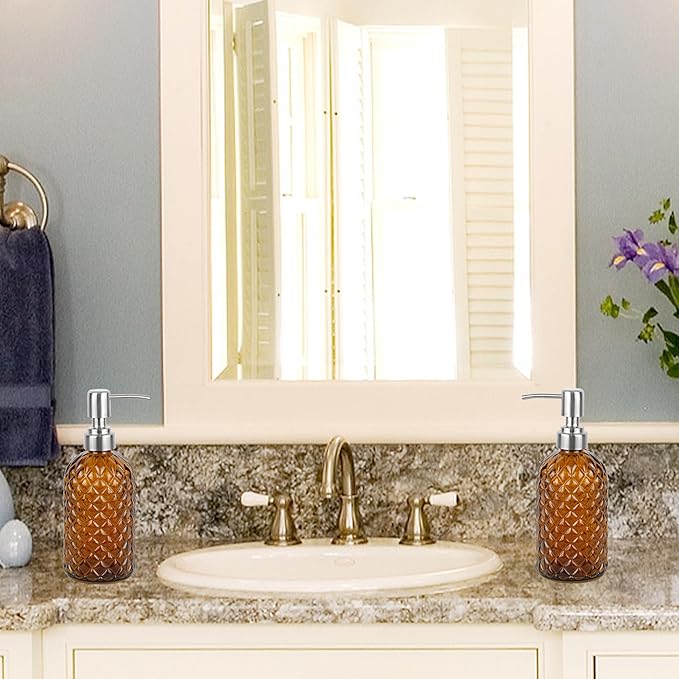 16 oz Diamond Pattern Glass Soap Dispenser, Kitchen and Bathroom Refillable Soap Dispenser with Rust Resistant Stainless Steel Pump for Hand Soap, Lotion Glass Liquid Dispenser(Amber-2pack)