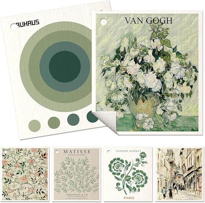 6 Pack Swedish Dishcloths for Kitchen - Reusable Dish Cloths for Washing Dishes Absorbent Cute Funny Kitchen Towels Cleaning Sponge, Green Artist