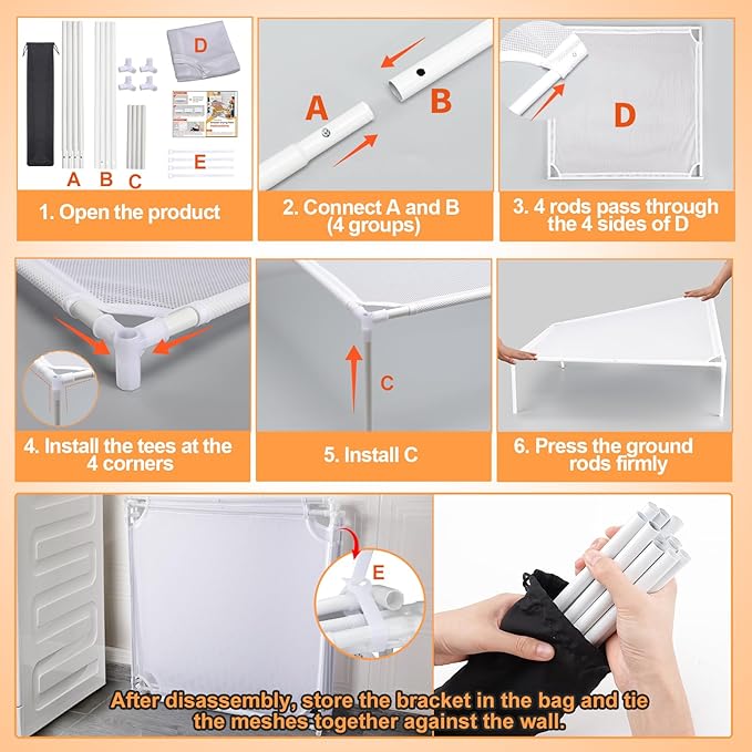 - Premium Material: Our mesh clothes drying rack is made of metal tube material and reinforced corner design, which has a stronger load-bearing capacity is more stable than plastic materials, and will not be easily tilted and damaged. The high-quality elastic mesh also ensures that the clothes will not fall to the ground after being put on it.