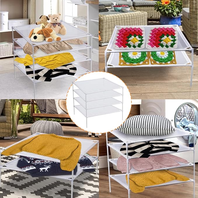 - Fast Drying: The sweater drying rack features a breathable mesh design that allows air to flow, making it easier for clothes to dry. The height of each flat drying rack is appropriate, even if they are stacked, it will not hinder drying.