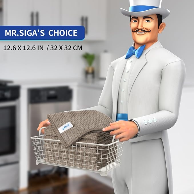 MR.SIGA Waffle Pattern Cleaning Cloths, Reusable Absorbent Microfiber Cleaning Towels, Ultra Soft Microfiber Kitchen Cleaning Rags, 6 Pack, Sandy Brown, 12.6 x 12.6 inch