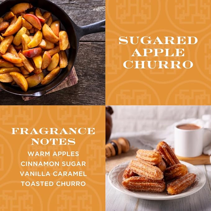 - True-To-Life Fragrances: Each of our candles tells a story with top, middle and bottom fragrance notes. Embrace the essence of fall with the delectable scent of warm apples, cinnamon sugar, velvety caramel, and toasted churro.