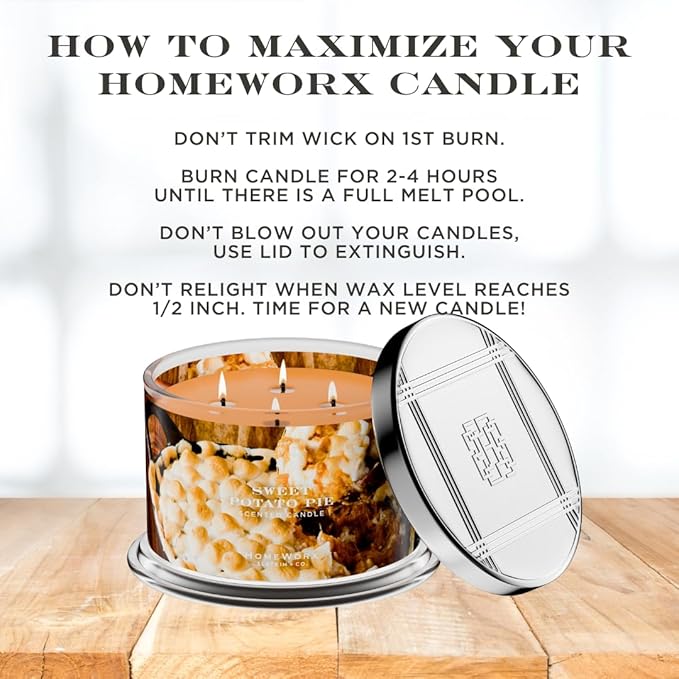 - VEGAN & CRUELTY-FREE: Made with a non-toxic, proprietary paraffin wax blend and safe fragrance ingredients, our scented candles are completely vegan and cruelty-free. HomeWorx candles burn clean and are safe for both you and your pets.