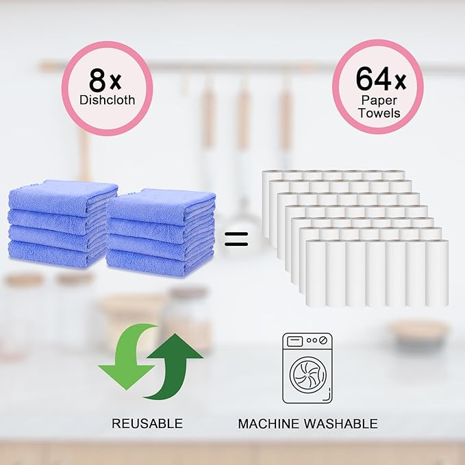 - HIGH QUALITY MATERIAL - Our dish rags are made of high quality non-abrasive and extra soft coral velvet thickening material, which is not easy to lint and fade, soft and not hurting hands, natural and without any chemicals. These dish cloths are not only suitable for kitchen cleaning, but also suitable for cleaning home furniture, car, window, electric appliance etc. It’s so easy to remove dust, dirt, stain, grease, fingerprints.