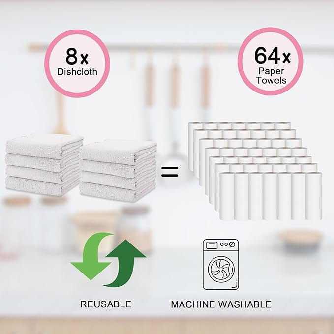 kimteny Kitchen Cloth Dish Towels, 13x28 Inches Premium Dishcloths, Super Absorbent Coral Velvet Microfiber Cleaning Cloths, Fast Drying Rags for Washing Dishes (13x28-8 Pack, White)