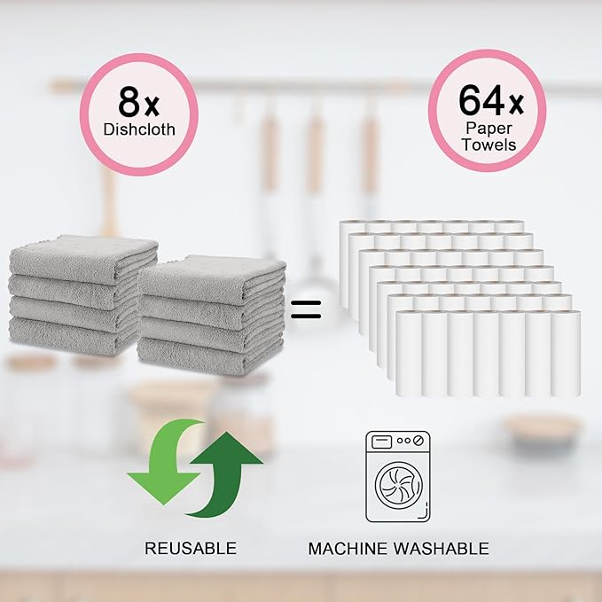 kimteny Kitchen Cloth Dish Towels, 13x28 Inches Premium Dishcloths, Super Absorbent Coral Velvet Microfiber Cleaning Cloths, Fast Drying Rags for Washing Dishes (13x28-8 Pack, Grey)