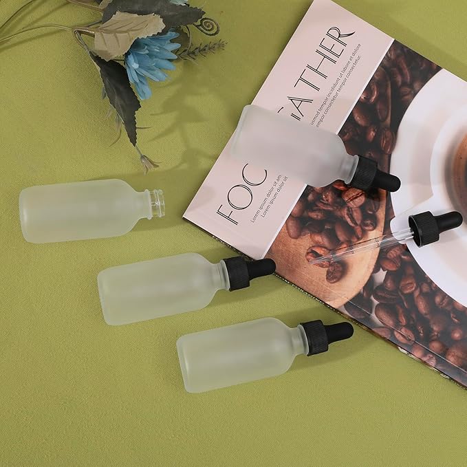 24 Pack, 2oz Glass Dropper Bottle, Preety Texture Tincture Bottles with Precise Scales Eye Droppe, for All Kinds Of Mixed Liquids,Leak-Proof Design for Easy Travel (Clear Frosted)